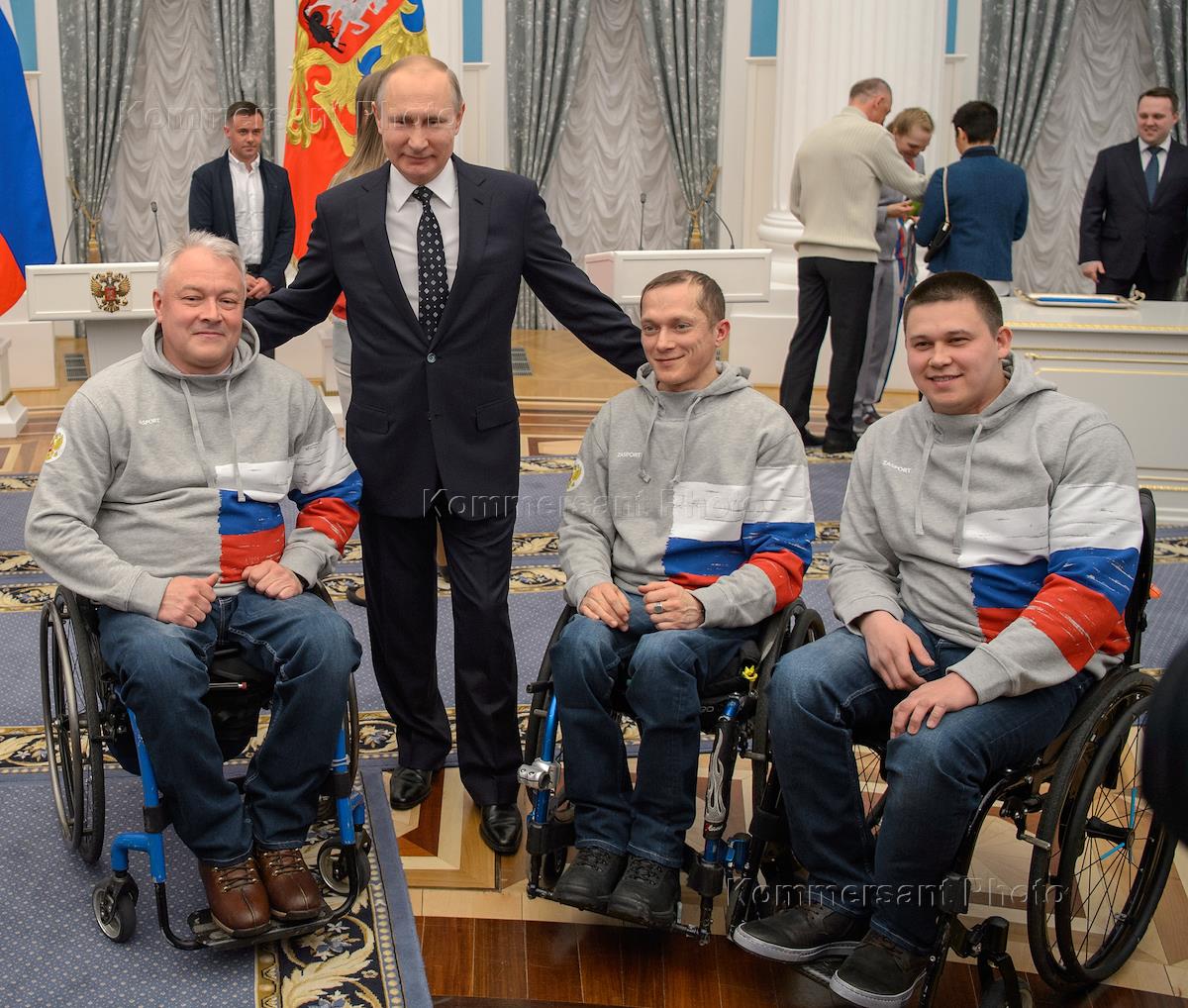 Политика Президент встретился в Кремле с российскими спортсменами – победителями и призёрами XII Паралимпийских зимних игр в Пхёнчхане и вручил им государственные награды.