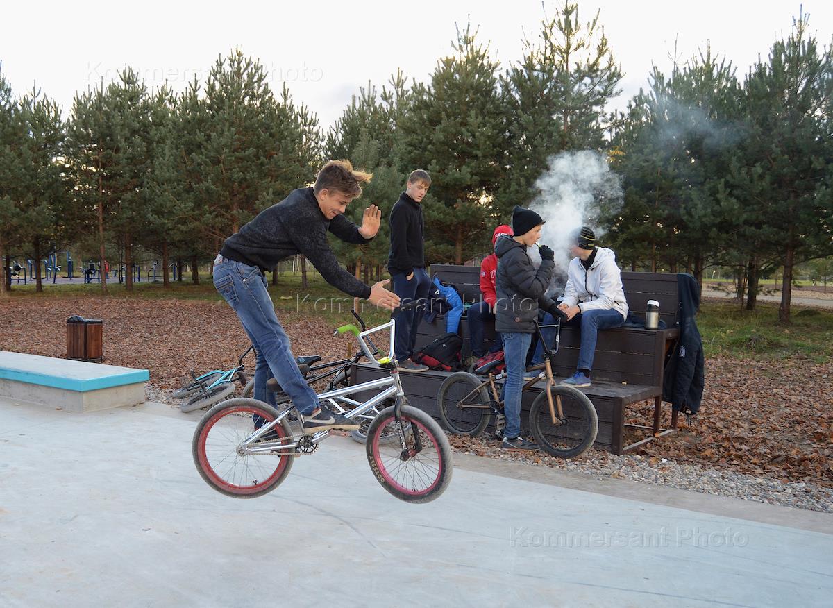 Жанровая фотография. Подростки на велосипеде BMX в поселке Мелехово.