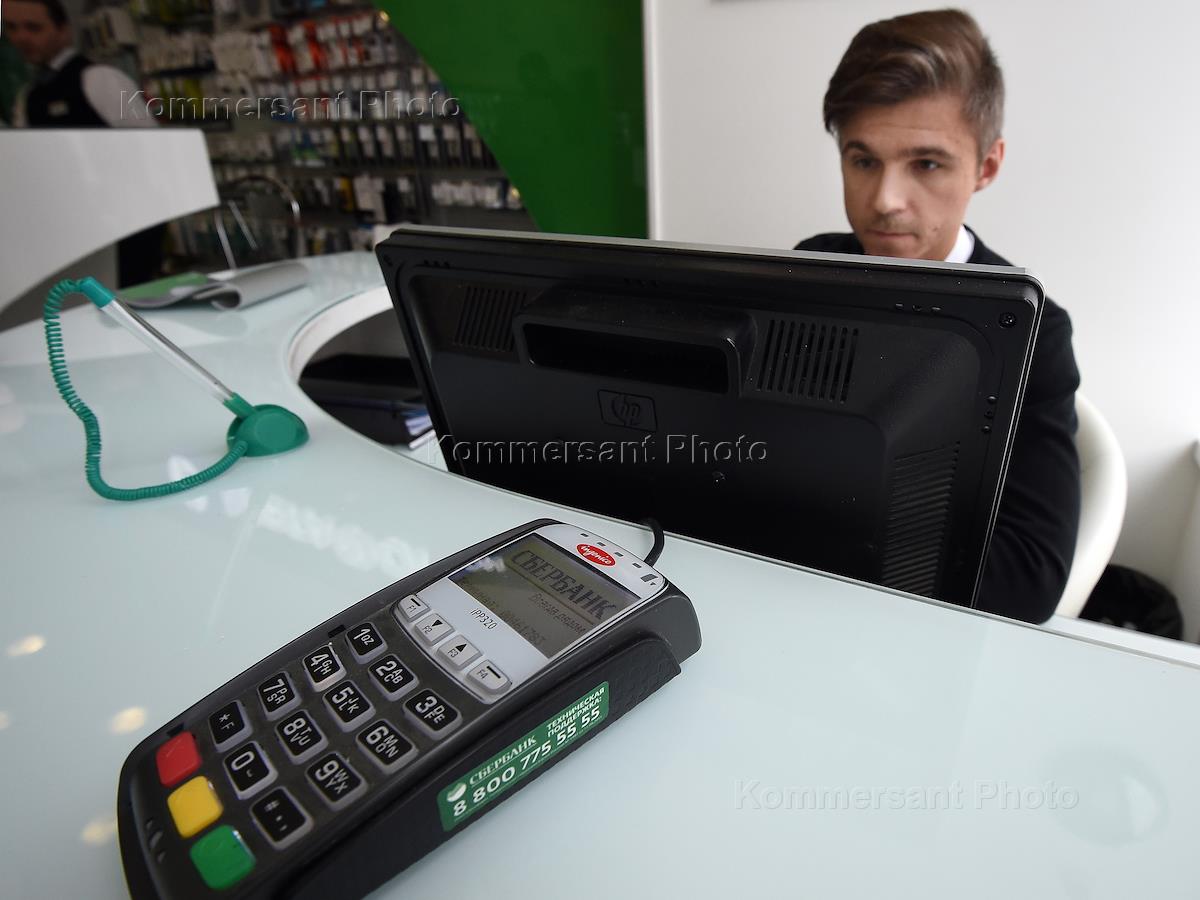 Салон оператора сотовой связи "Мегафон". Терминал безналичного расчета "Сбербанка".