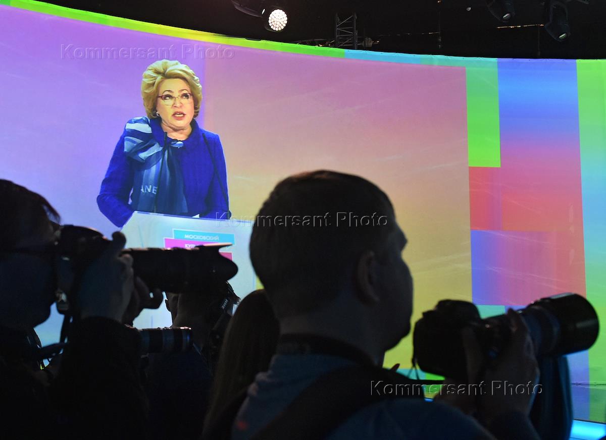 III Московский культурный форум 2018 прошел в Центральном выставочном зале "Манеж". Слева направо:…