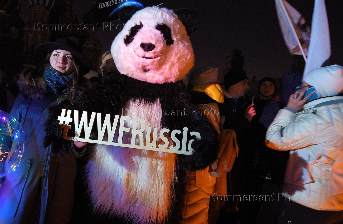 Ежегодная экологическая акция Всемирного фонда дикой природы (WWF) "Час Земли" на Красной площади.