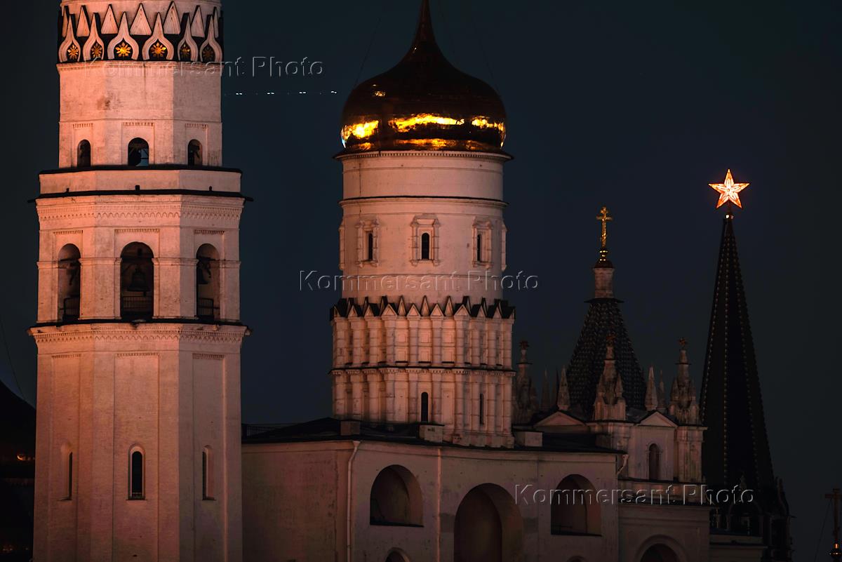 Ежегодная экологическая акция Всемирного фонда дикой природы (WWF) "Час Земли". Вид из отеля Балчуг Кемпински.