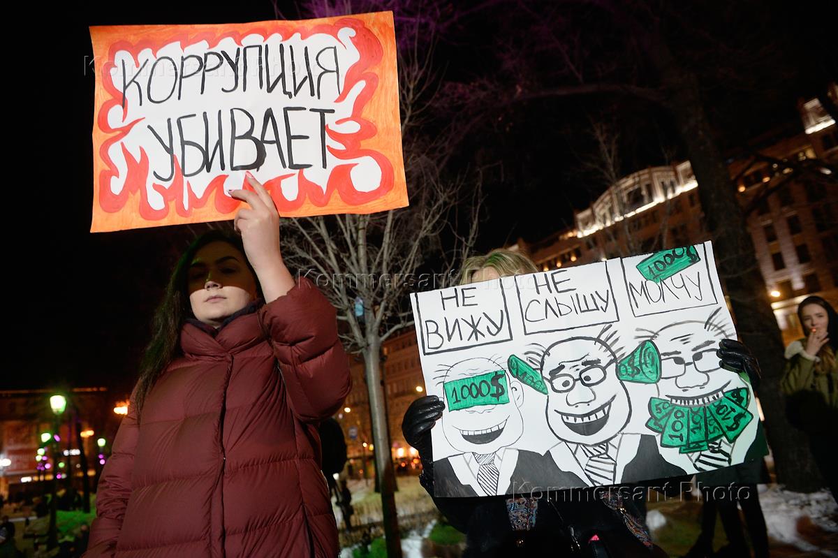 Акция памяти погибших при пожаре в ТРЦ "Зимняя вишня" в Кемерово на Пушкинской площади.