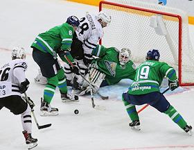 Континентальная хоккейная лига (КХЛ). Кубок Гагарина. 1/2 финала. Плей-офф. Матч между командами "Салават Юлаев" (Уфа) и "Трактор" (Челябинск).