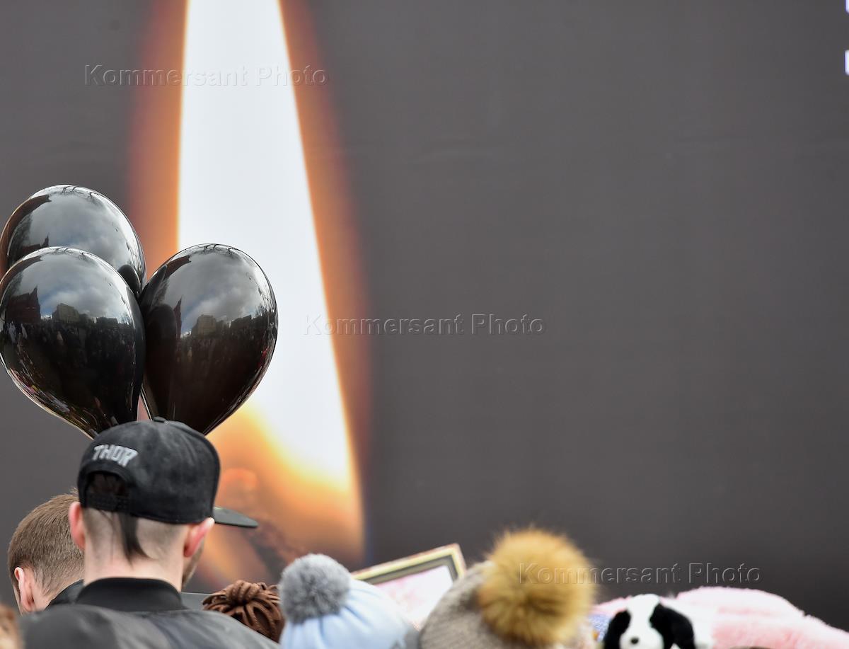 Временный мемориал на Манежной площади погибшим при пожаре в кемеровском ТРЦ "Зимняя вишня"