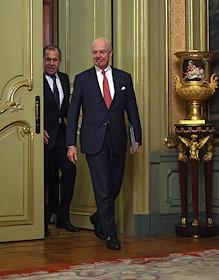 Политика Встреча Министра иностранных дел Российской Федерации Сергея Лаврова со специальным представителем Генерального секретаря ООН по Сирии Стаффаном де Мистурой в Доме приемов МИД России.