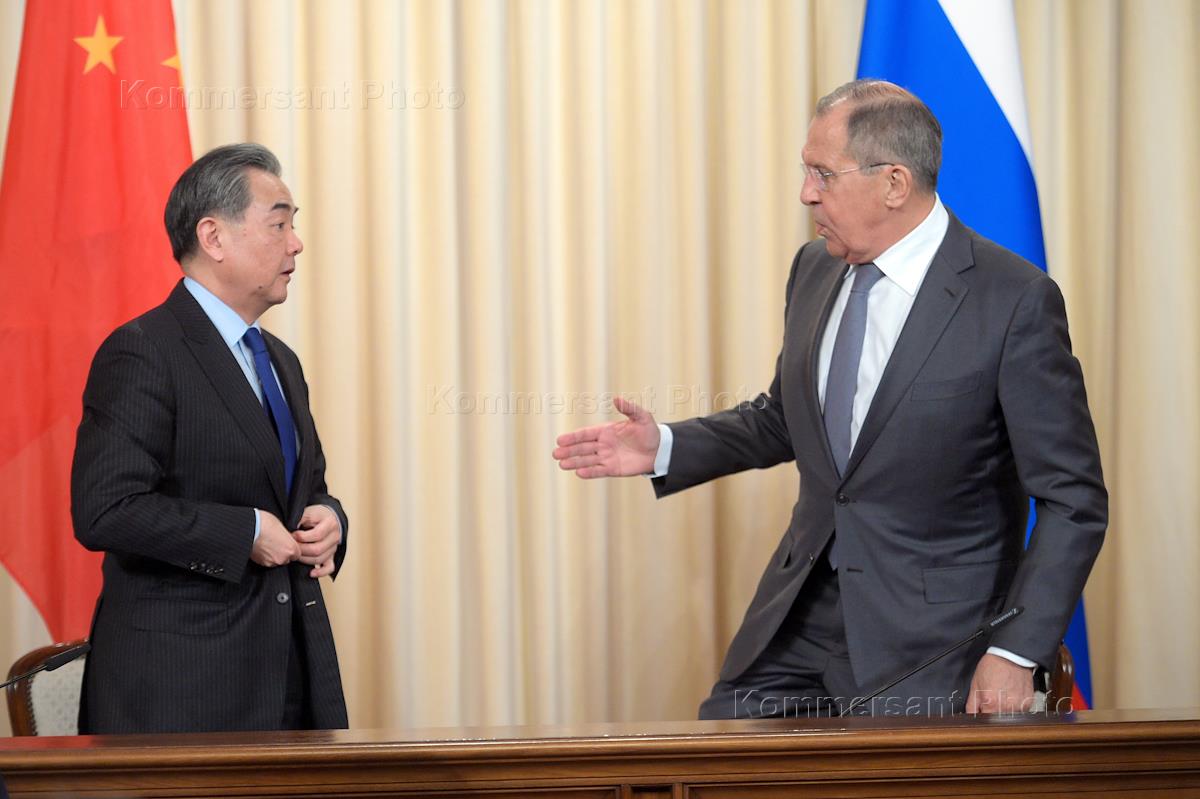 Министр иностранных дел России Сергей Лавров (справа) и министр иностранных дел Китайской Народной…