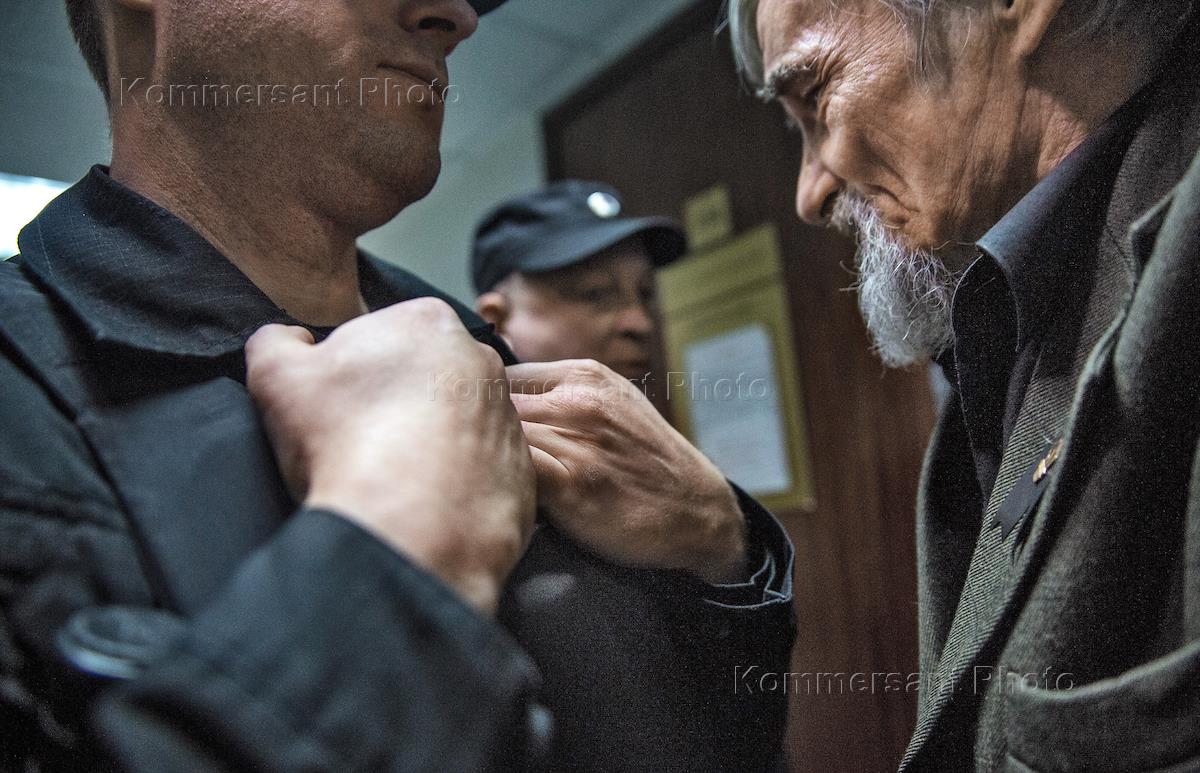 Глава карельского отделения общества "Мемориал" Юрий Дмитриев (справа) перед вынесением ему…