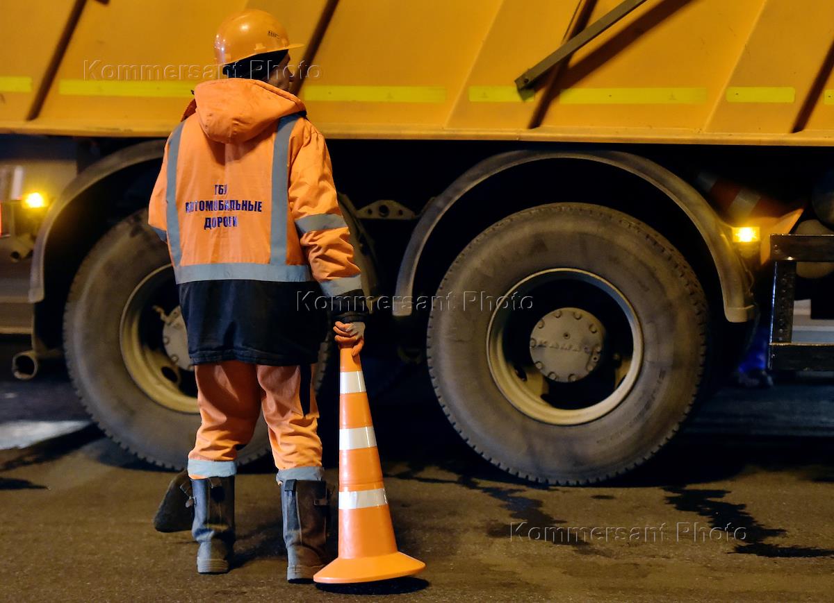 Специалисты Комплекса городского хозяйства во время начала работ по ремонту дорожного покрытия. …