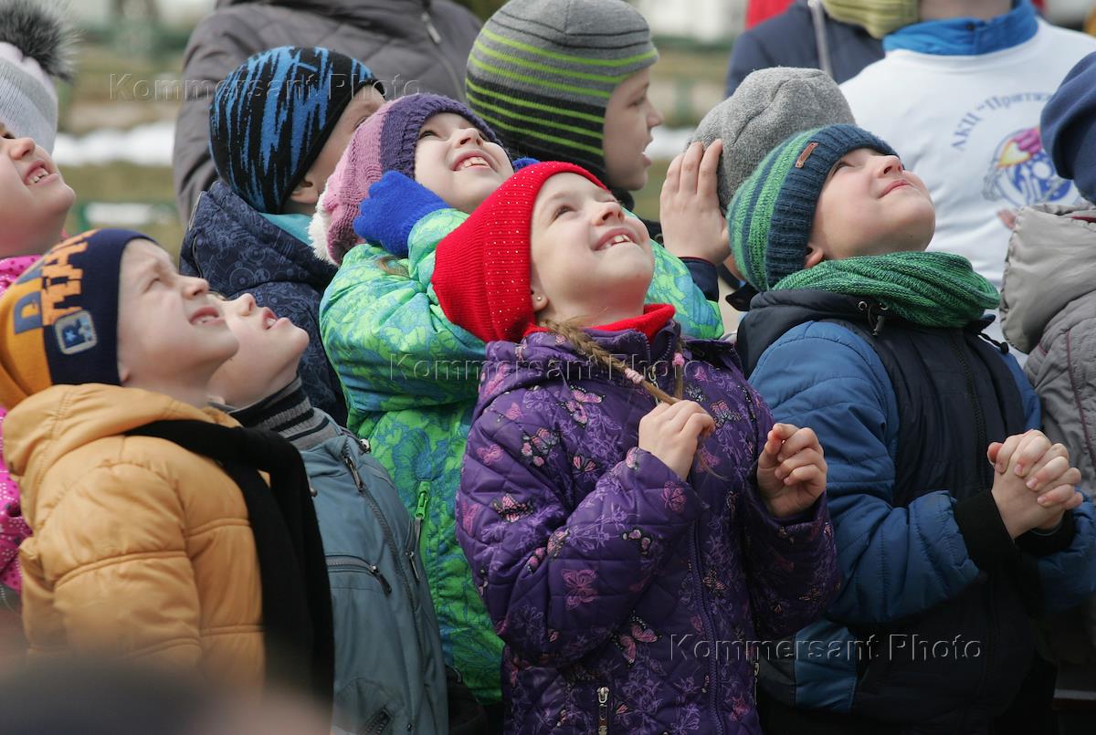 Детский праздник в нижегородском Планетарии. Дети во время запуска воздушных шаров в честь годовщины…