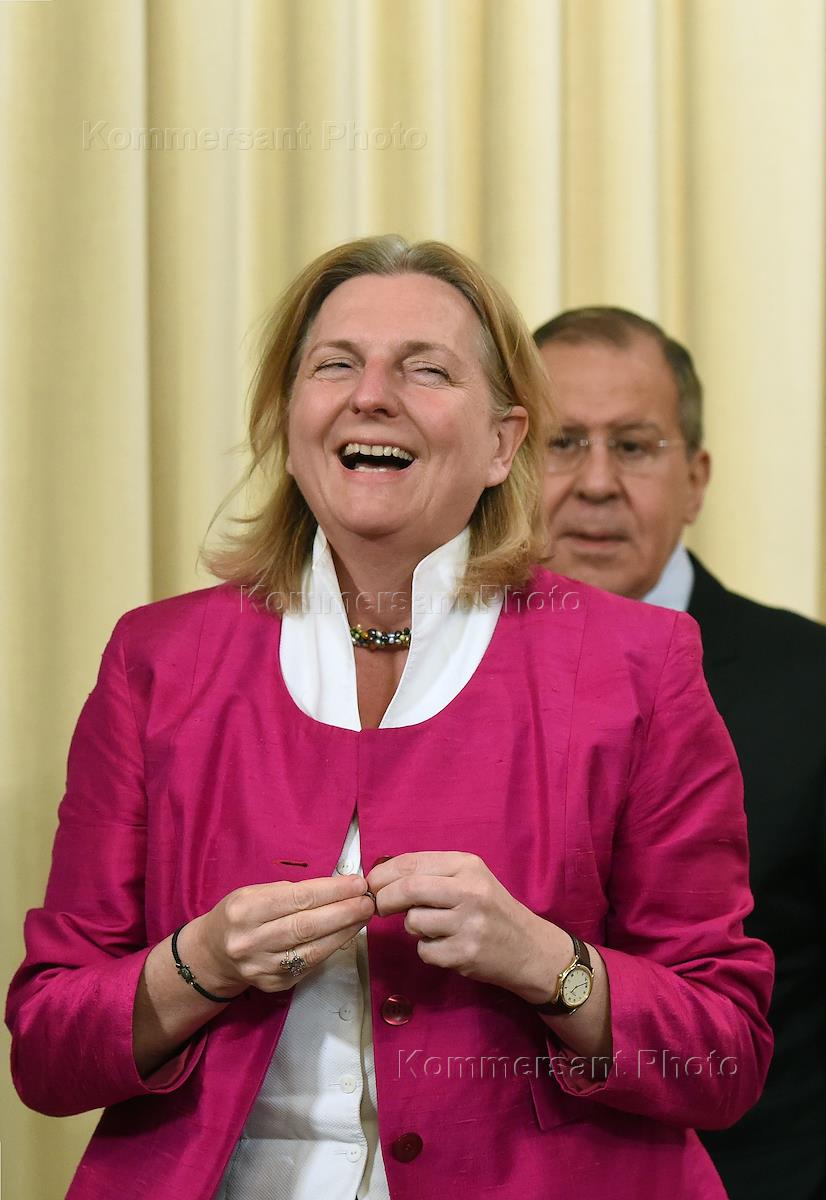 Политика Встреча Министра иностранных дел Российской Федерации Сергея Лаврова с Министром иностранных дел Австрийской Республики Карин Кнайсль в Доме приемов МИД России.