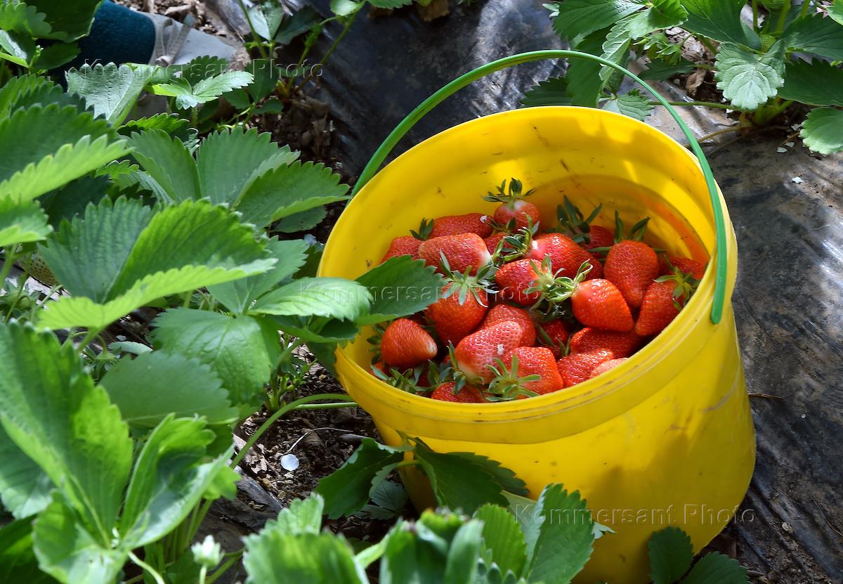 Сельскохозяйственный производственный кооператив "Правда". Сбор урожая клубники.