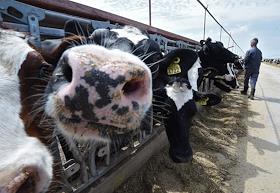 Молочный комплекс в селе Первомайское. Зоотехник во время осмотра коров.