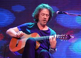 Британский гитарист Доминика Миллера во время концерта в клубе Yota Arena.