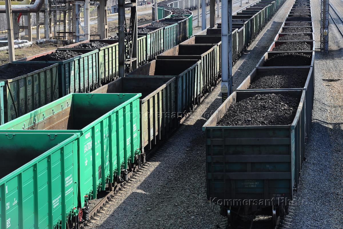 Железнодорожные составы с бурым углем на технологических путях новосибирской ТЭЦ-5 принадлежащей ООО…