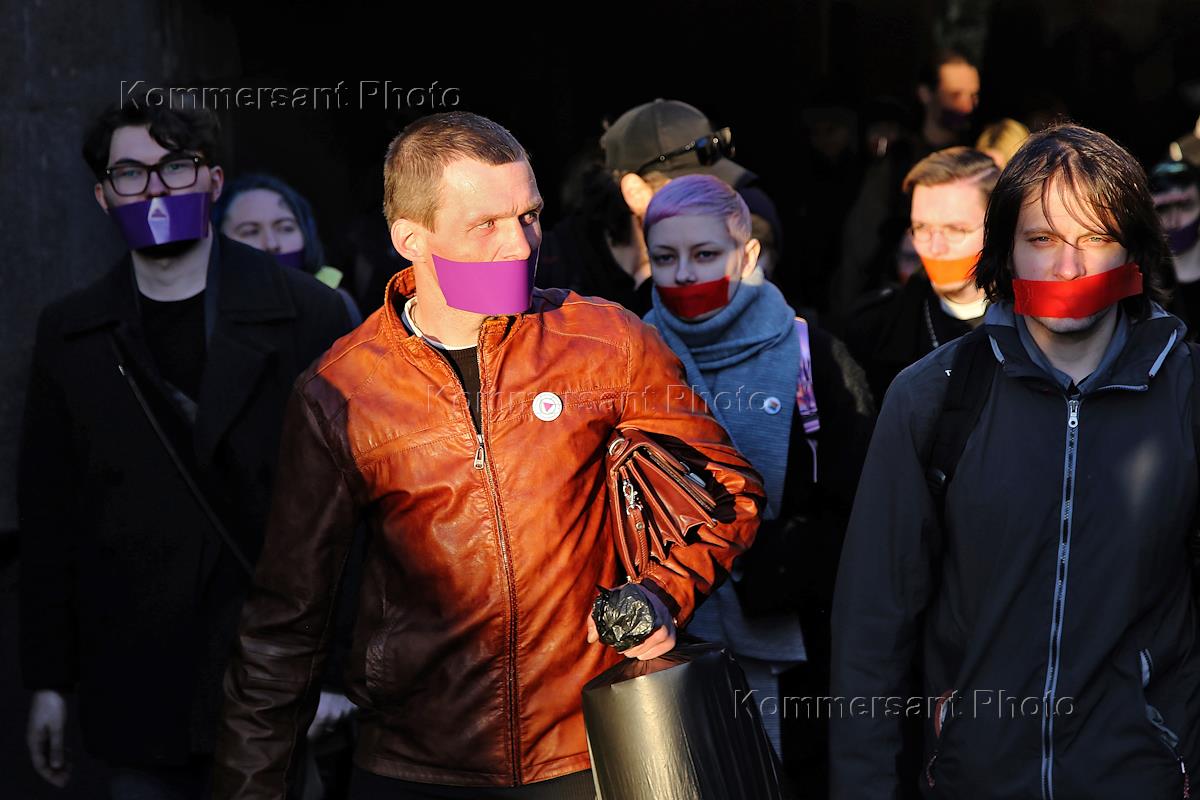 Акция ЛГБТ-активистов на Невском проспекте в "День Молчания". Участники акции встали на Невском…
