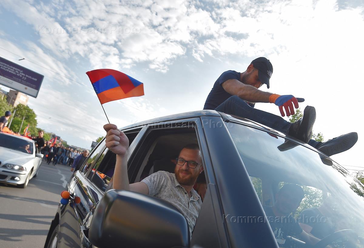 Политическая ситуация в Армении. Сторонники лидера оппозиционного движения "Елк" Никола Пашиняна,…