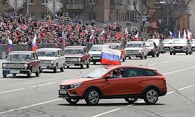 Шоу "Танцующие автомобили" в рамках первомайской демонстрации прошло на площади Куйбышева.