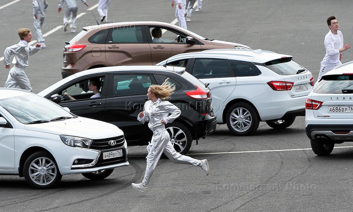 Шоу "Танцующие автомобили" на площади Куйбышева в Самаре.