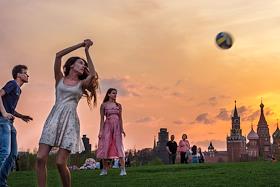 Виды Москвы. Отдыхающие в парке Зарядье.