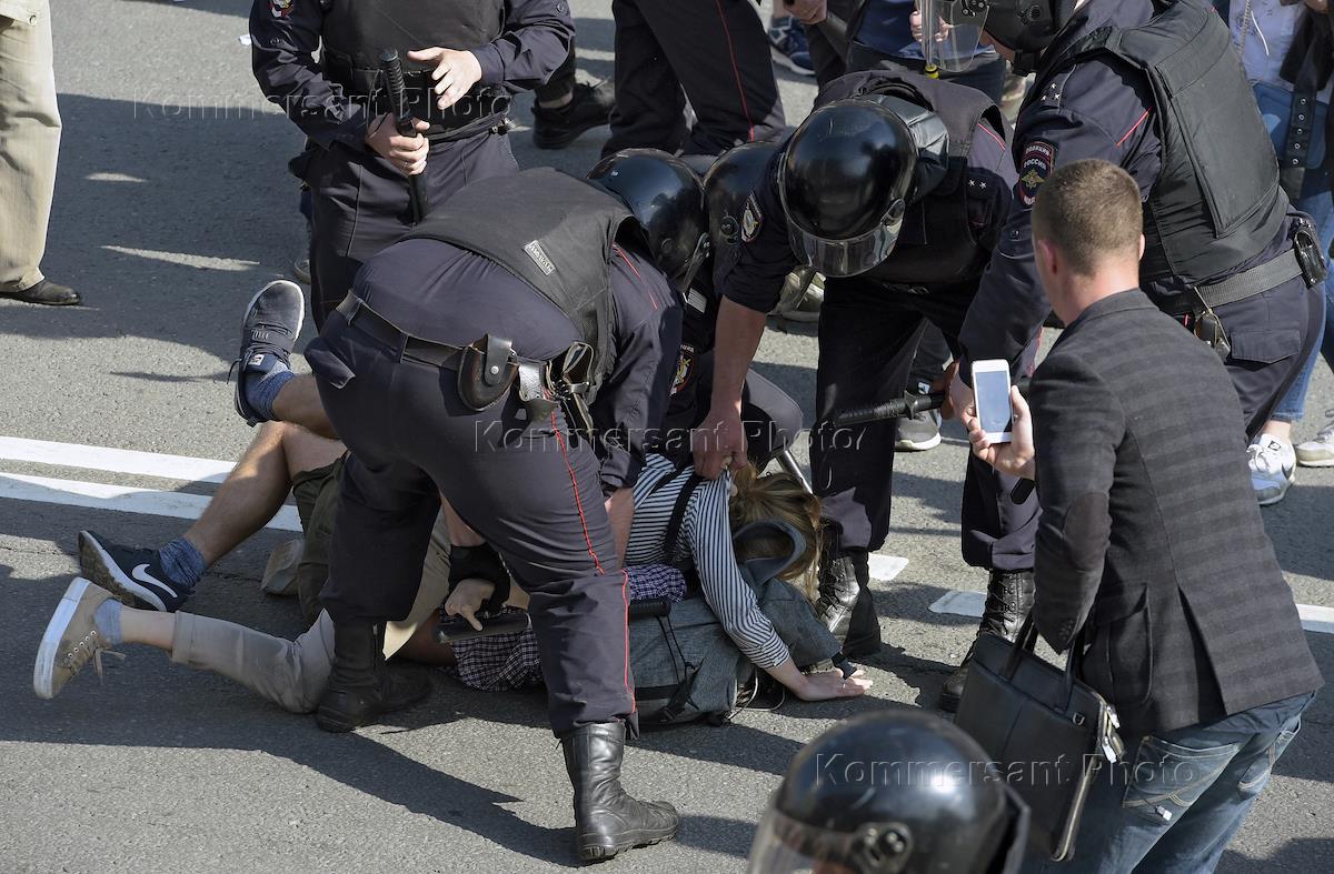 Общество Несанкционированная акция протеста сторонников оппозиционера Алексея Навального "Он нам не царь" и акция активистов Национально-освободительного движения (НОД) в поддержку президента России Владимира Путина на Пушкинской площади.