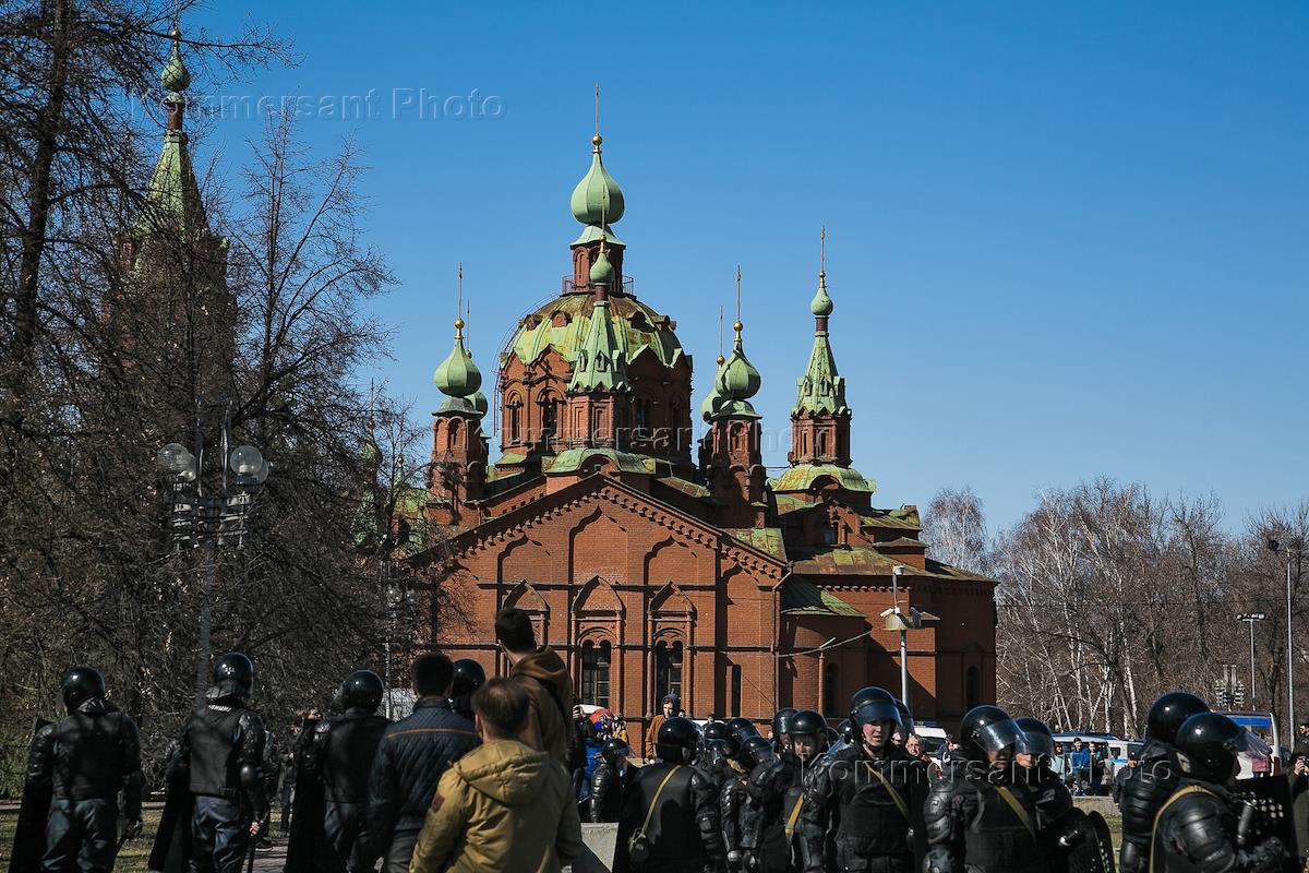Несанкционированная акция протеста сторонников оппозиционера Алексея Навального "Он нам не царь" в Челябинске.