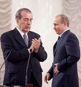Президент России Владимир Путин (слева) и председатель Союза российских промышленников и…