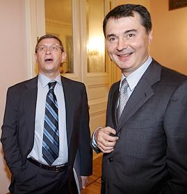Председатель совета директоров "Ренова" Виктор Вексельберг (слева) и президент "ЕвразХолдинга"…