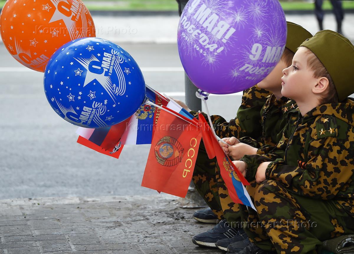 Акция "Бессмертный полк" прошла по центральным улицам города. Юные участники перед началом шествия.