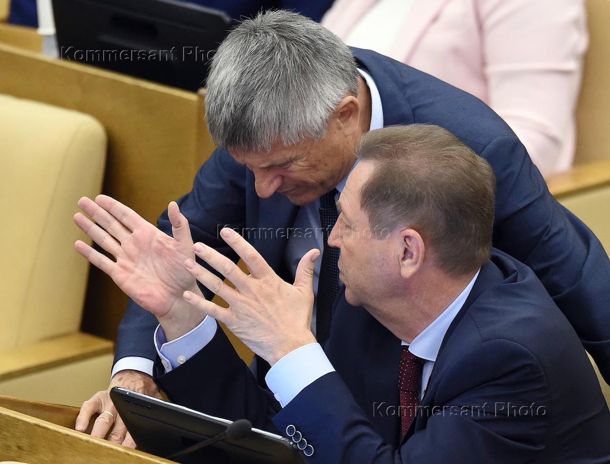 Пленарное заседание Государственной думы (ГД) России. Слева направо: председатель комитета ГД России…