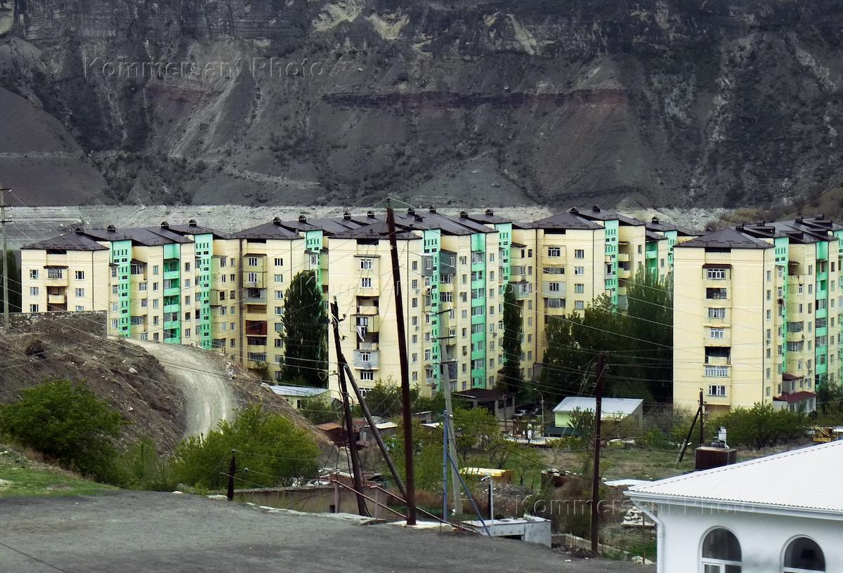 Виды Дагестана. Многоэтажные жилые дома в горном ущелье.
