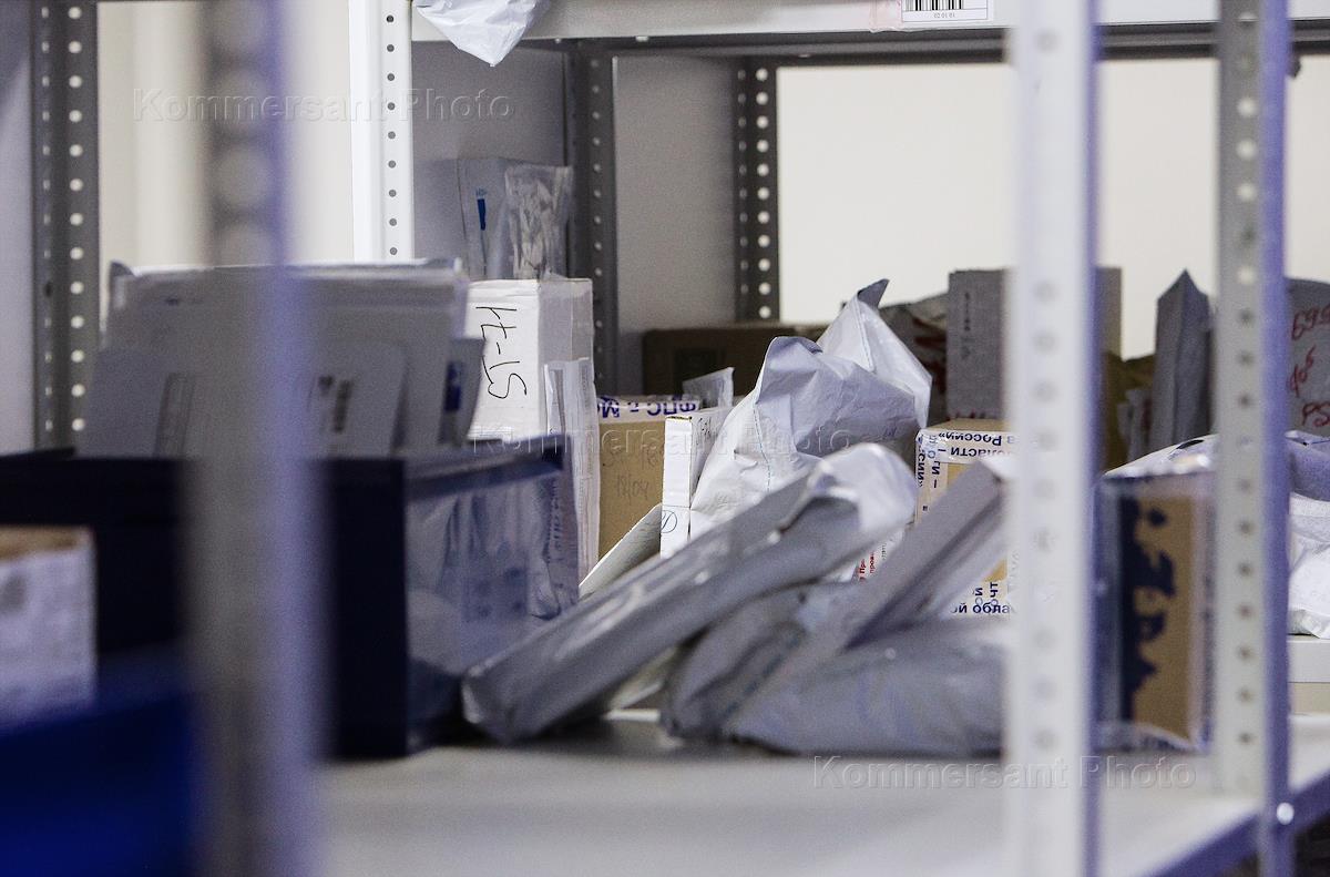 Отделение почты России после ремонта. Корреспонденция на стеллажах.