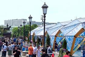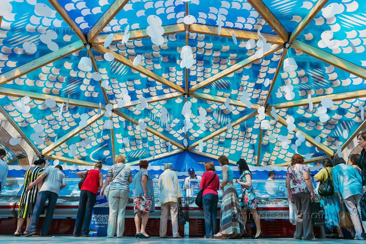 Гастрономический фестиваль "Рыбная неделя в Москве" на Площади Революции. Торговые павильоны.
