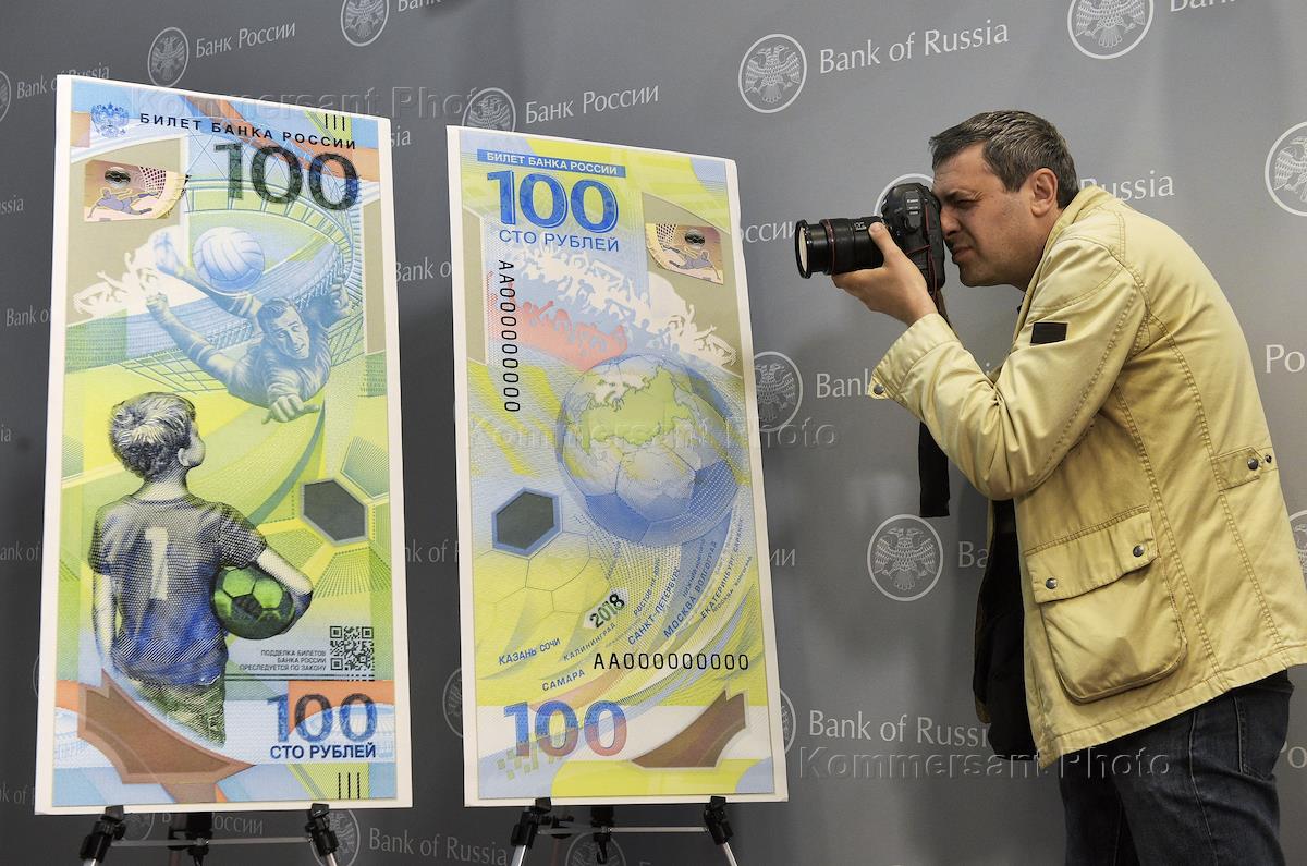 Экономика и бизнес Пресс-конференция, посвященная выпуску в обращение памятной банкноты Банка России к чемпионату мира по футболу FIFA 2018 г. в пресс-центре Банка России.