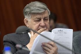 Заседание Президиума Российской академии наук (РАН). Иммунолог, академик РАН Рэм Петров на заседании.