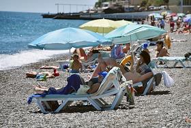 Жанровая фотография. Начало курортного сезона в Крыму. Отдыхающие на пляже.