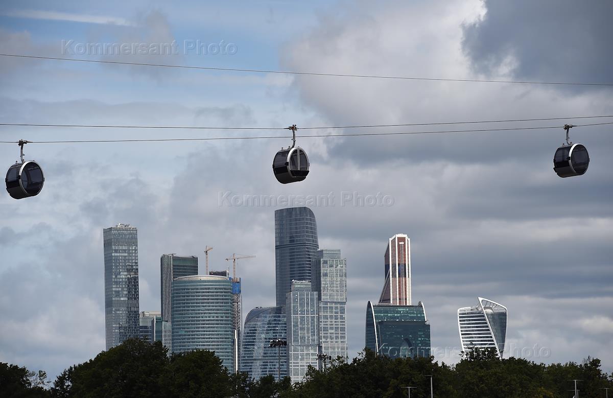 Виды Москвы. Международный московский деловой центр "Москва-сити" и канатная дорога над…