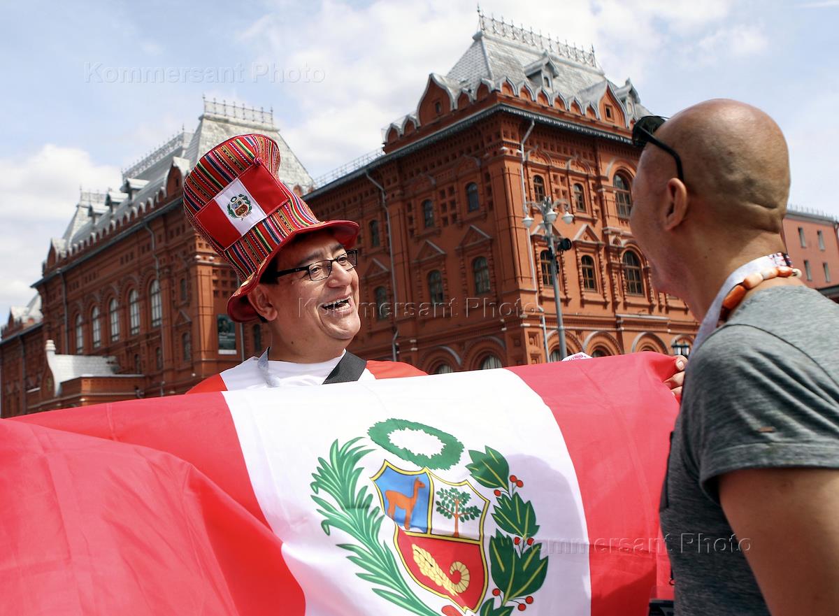 Чемпионат мира (ЧМ) по футболу в России FIFA-2018. Иностранные болельщики на Манежной площади.