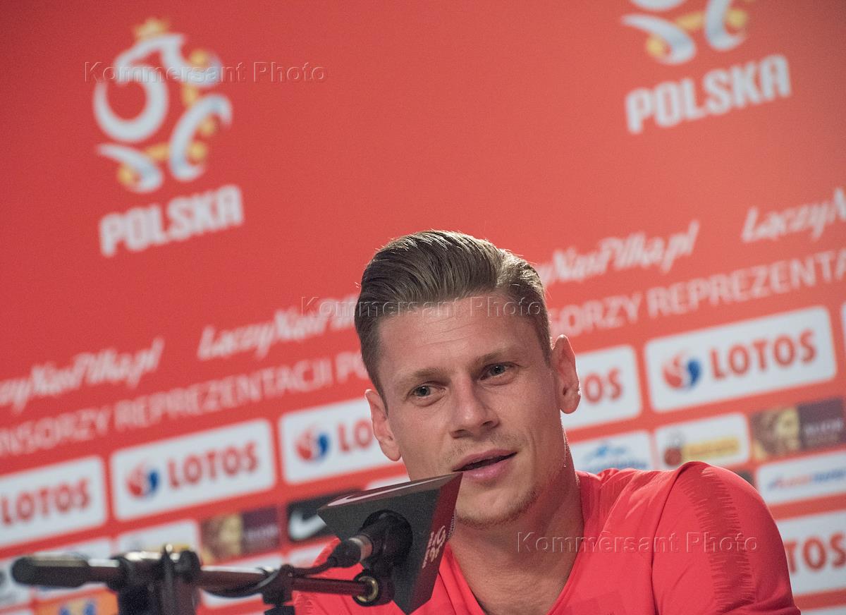 Подготовка к Чемпионату мира по футболу 2018 FIFA. Игрок сборной команды Польши Лукаш Пищек на…