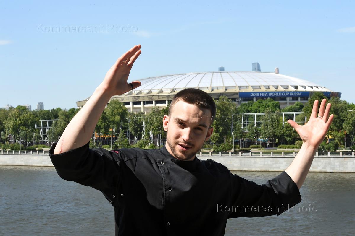Фотопроект к Чемпионату мира по футболу 2018. Повар Захар на фоне стадиона "Лужники".