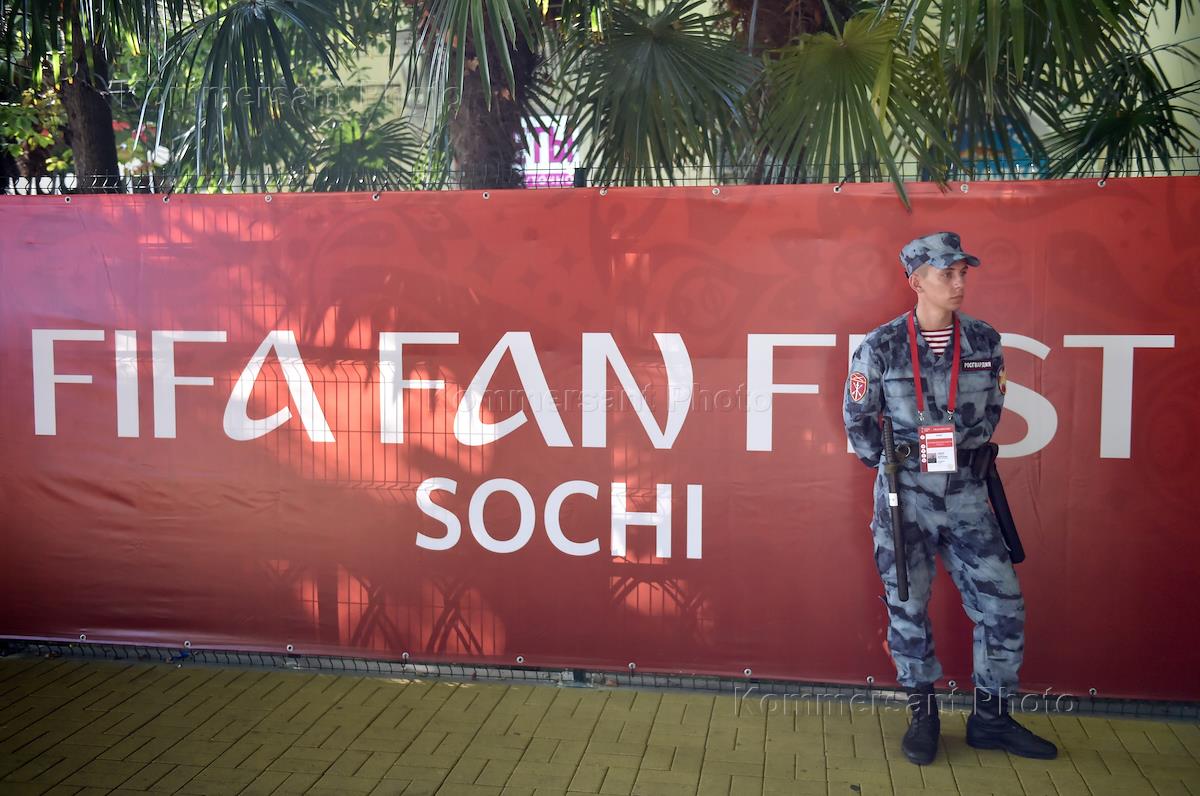 Чемпионат мира по футболу в России FIFA-2018. Болельщики и сотрудники полиции на территории фан-зоны…
