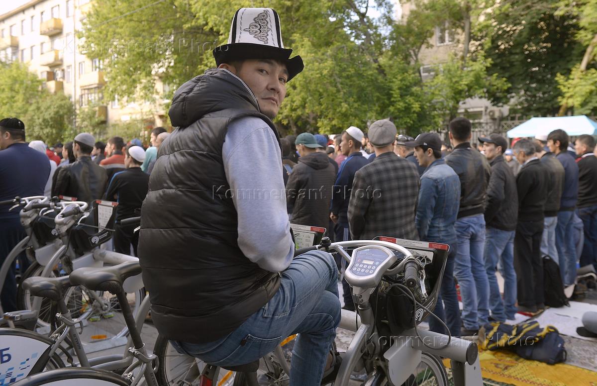 Праздник Ураза-Байрам. Верующие перед началом намаза у Исторической мечети.