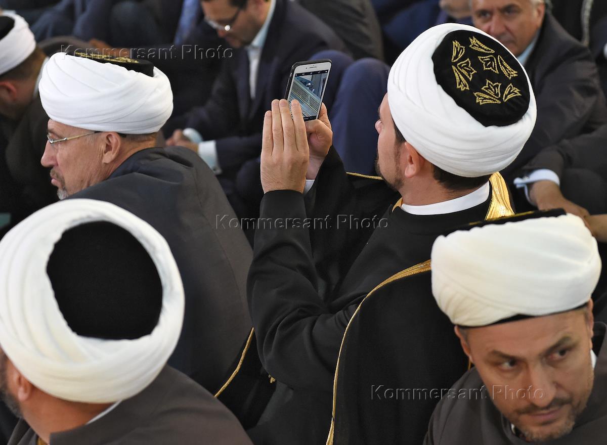 Праздник Ураза-Байрам. Верующие в Московской Соборной мечети. Председатель президиума Духовного…