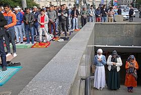Праздник Ураза-Байрам. Верующие во время намаза в Санкт-Петербурге.
