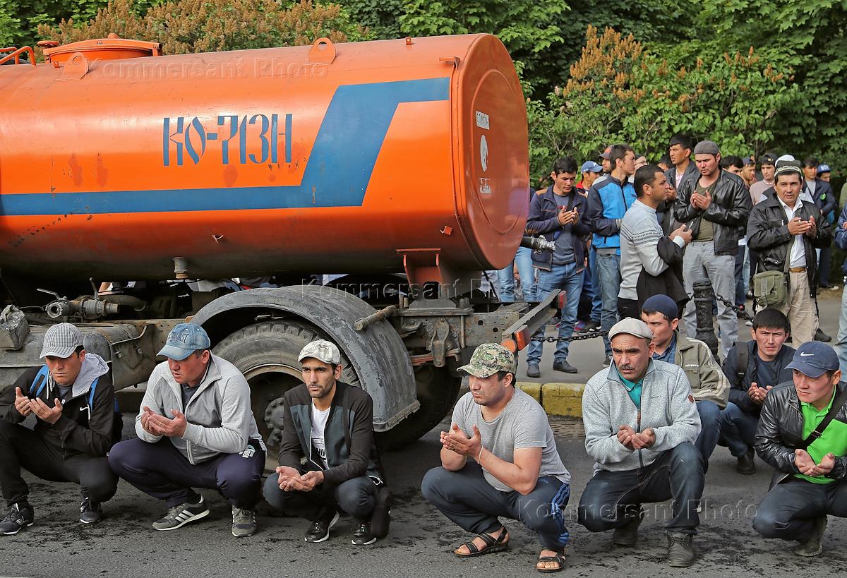Праздник Ураза-Байрам. Верующие во время намаза в Санкт-Петербурге.