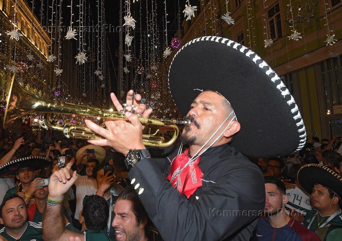 Чемпионат мира по футболу в России FIFA-2018. Болельщики сборной команды Мексики празднуют победу…