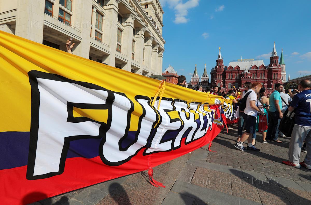Чемпионат мира по футболу в России FIFA-2018. Болельщики сборной Колумбии на Манежной площади.