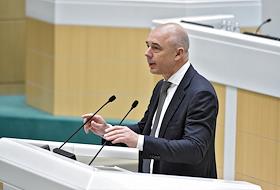 Пленарное заседание Совета Федерации (СФ) России. Аудитор Счетной палаты Михаил Мень во время…