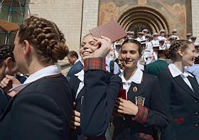 Образование Объединенный выпуск воспитанников Московского кадетского корпуса "Пансион воспитанниц Министерства обороны РФ", Московского суворовского военного училища и Московского военно-музыкального училища на Соборной площади Московского Кремля.