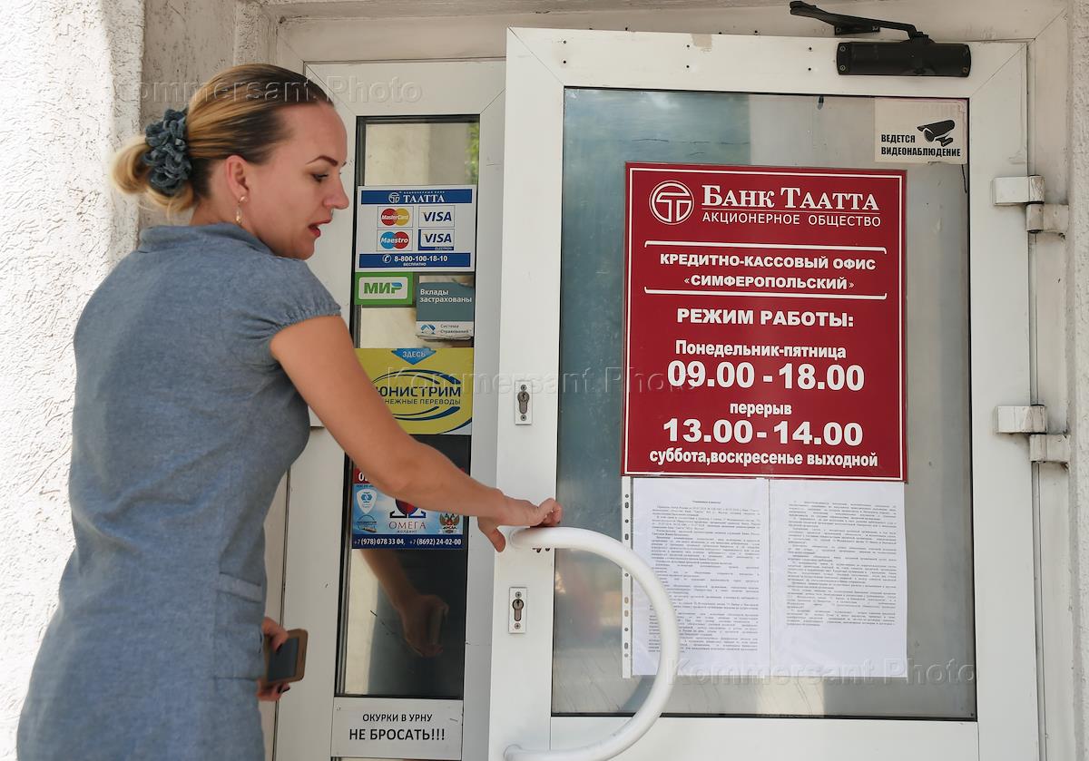 Якутский банк «Таатта» ввел ограничение на счета клиентов по выдаче наличных средств.Кредитно-кассовый офис «Симферопольский».